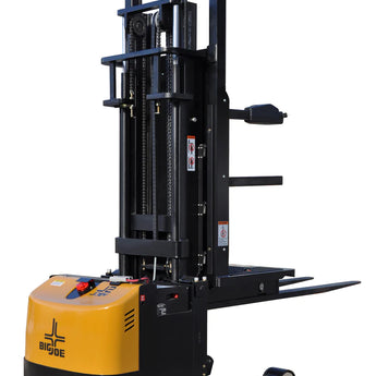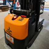 The PDSR Walkie Reach forklift from Big Joe is a versatile and efficient solution designed for narrow aisles and pallet stacking. This lithium-ion electric walkie reach truck is a reliable supporter for all kinds of stacking work, ensuring accurate and reliable operation with its electro-magnetic valve and side shift.