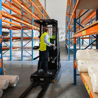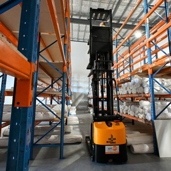 Perfect for narrow aisle warehouses requiring efficient high-density storage. The PDSR doesn't require a forklift ticket to operate.